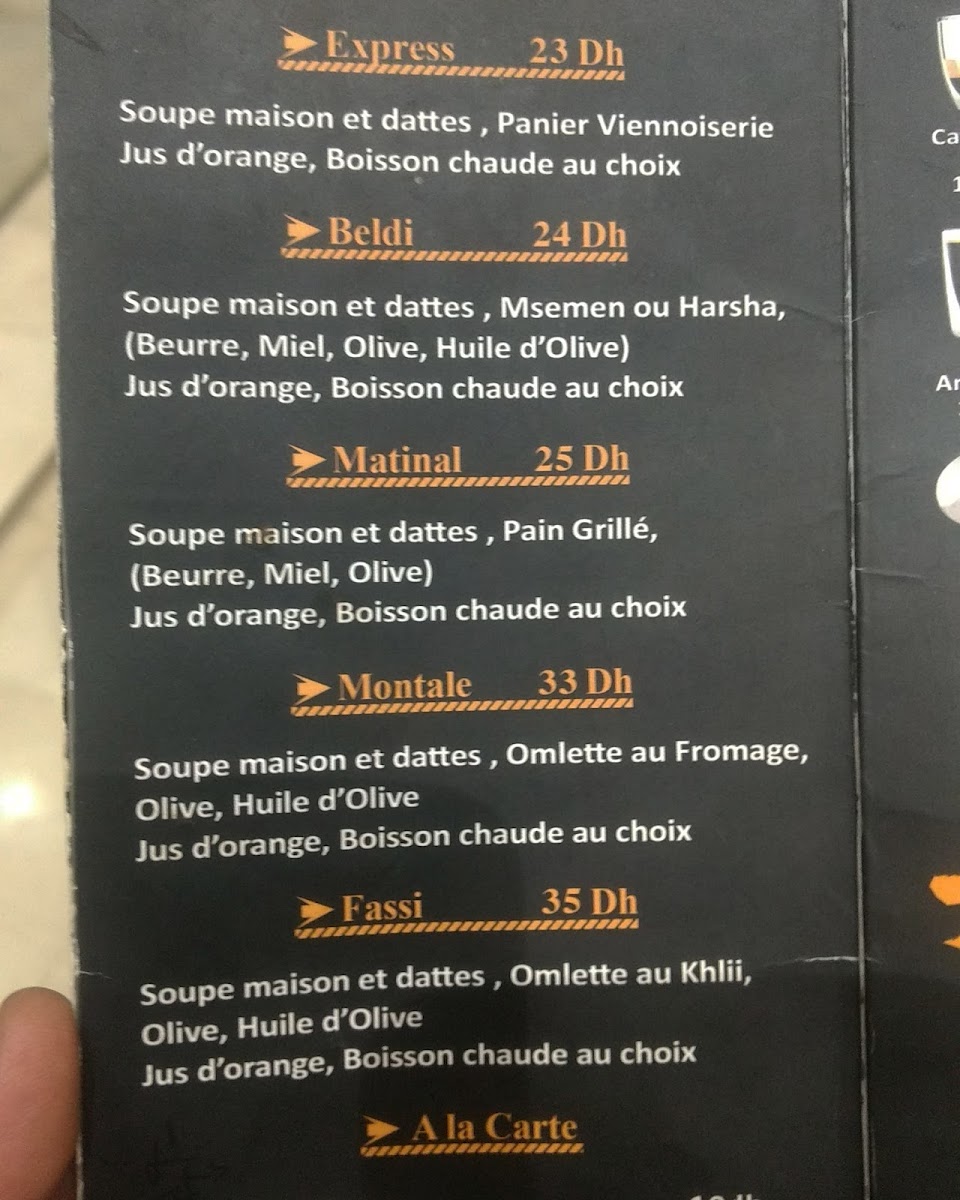 Welcome to Montale Café, a charming café located in the heart of Casablanca, Morocco. Known for its spacious, clean environment, Montale Café is equipped with a well-ventilated, air-conditioned non-smoking area, creating a pleasant atmosphere for all patrons. One of the standout features of the menu is the homemade soup paired with sweet dates, a unique breakfast option that showcases local flavors in an innovative way.